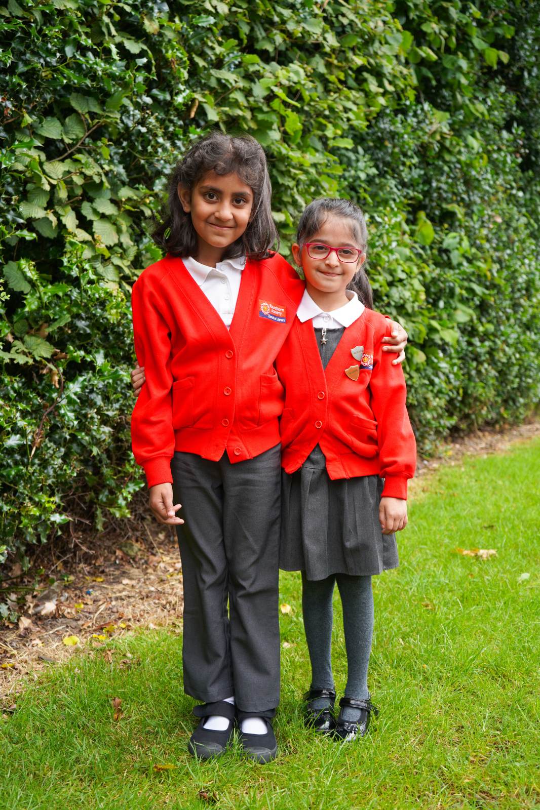 - Plain white shirt, blouse or polo shirt under their sweatshirt or cardign